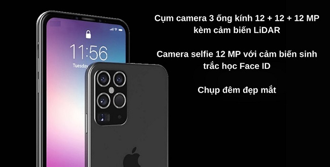 Cụm camera ở mặt sau sẽ được bố trí vuông vức thay vì hình tam giác như mẫu iPhone 12. 3 camera 12 + 12 + 12Mp và kèm theo 1 cảm biến TOF 3D LiDAR. Nhờ đó, sản phẩm sẽ cho phép việc quay hình trong đêm tối, zoom quang học đến 5x, chụp góc cực rộng, lấy nét chuyển động cực tốt với công nghệ LiDAR.